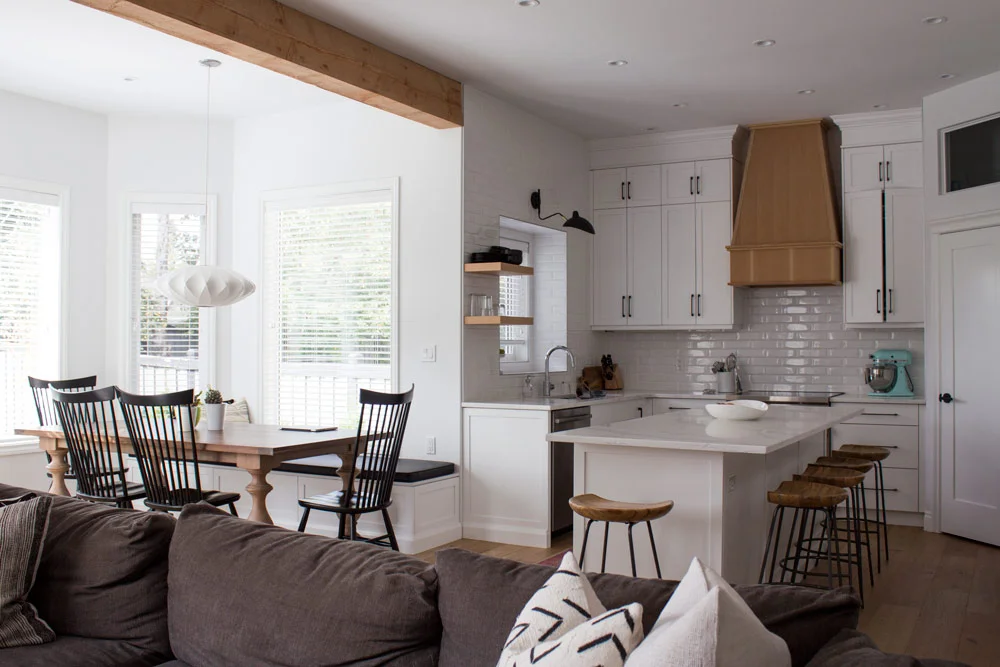 To come into the new era this early 90’s home needed a full overhaul to escape dusty pink, brass and columns. Fresh bright spaces that flowed, more storage and usable space was what this busy family of five wanted.